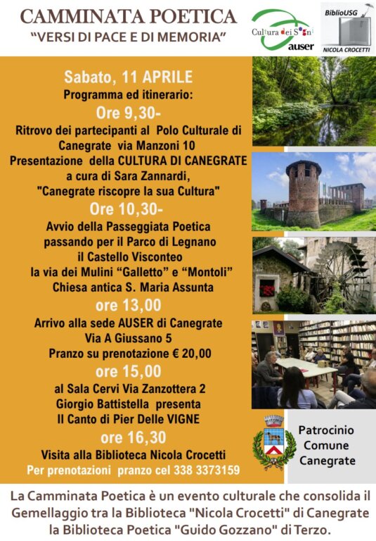 La camminata Poetica è un evento culturale che unisce poesia e natura e coinvolge la Biblioteca "Nicola Crocetti" di Canegrate e la Biblioteca Poetica "Guido Gozzano" di Terzo.
