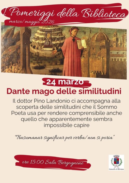 Sabato 11 aprile 2026, Canegrate ospita una giornata di poesia e cultura. Dopo il percorso tra parchi, chiese e luoghi storici, il pomeriggio sarà dedicato alla lettura e commento del Canto XIII dell’Inferno da parte del professor Giorgio Battistella.